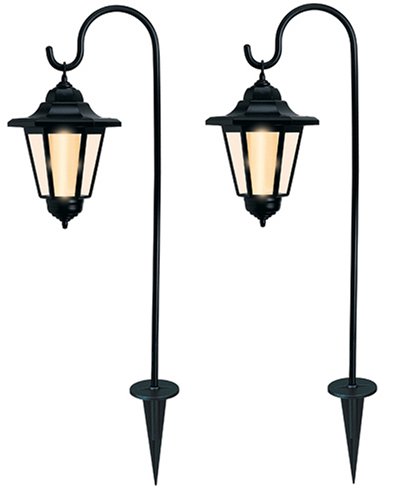 Legacy series light. New LED technology for long run time. No wiring. Solar panels charge batteries during the day. Includes: Batteries, ground and wall mounts. Aluminum hanging hook is adjustable. Two light set.